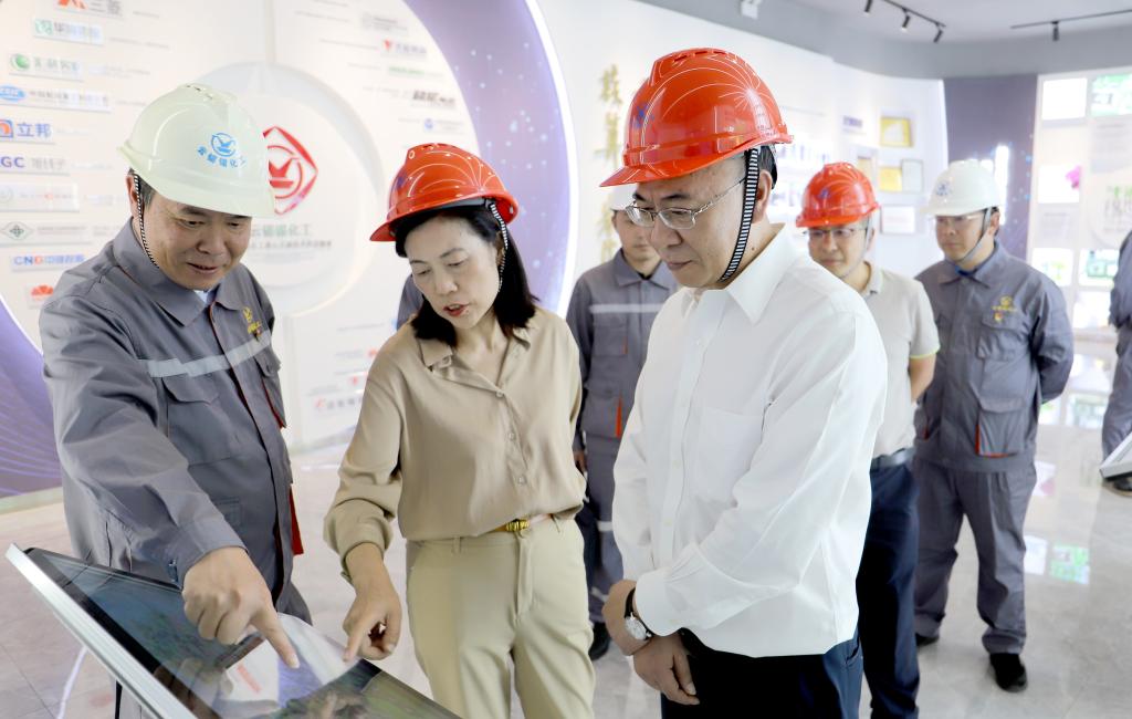 在錫化工有機錫生產基地,孫勇實地查看了丁基錫生產線、丁基錫自動控制室、甲基錫產品庫房及“化合錫世界”綜合展廳,詳細詢問錫化工生產經營情況、產品種類、產品用途、市場優勢及黨建工作開展情況。