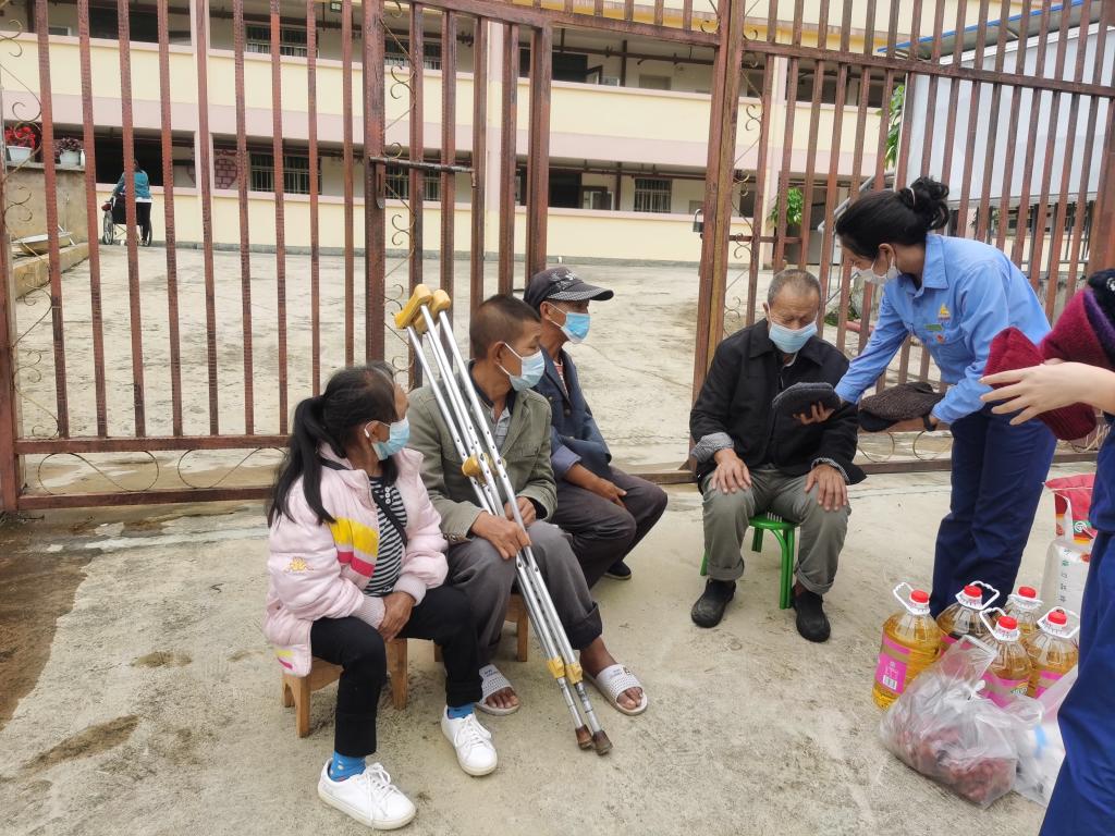 華聯鋅銦公司團委組織團員青年到都龍鎮敬老院開展重陽節送溫暖活動,把公司團委的溫暖問候和真誠祝福送到每一位老人身邊。志愿者們有的肩膀扛著大米、有的手中提著水果、還有的帶來了溫暖的秋帽,盡管只是短暫的相逢陪伴,但從老人們臉上皺紋深處的笑容亦可感覺到他們內心的真歡喜。(黃仔依)