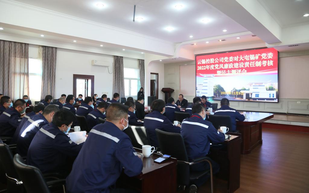 12月6日、8日,控股公司黨委書記、董事長孫勇率第一考核組,分別對錫業股份黨委、大屯錫礦黨委進行2022年度黨風廉政建設責任制檢查考核。