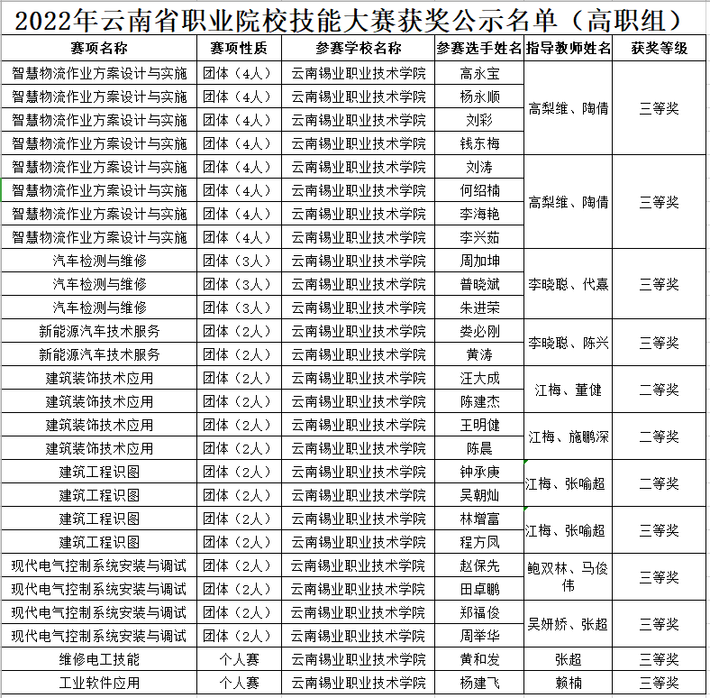 在云南省教育廳日前公布的2022年云南省職業(yè)院校技能大賽高職組獲獎名單中,由職業(yè)學(xué)院14名指導(dǎo)教師、27名學(xué)生組成的12個(gè)參賽團(tuán)隊(duì)共計(jì)斬獲二等獎3項(xiàng)、三等獎9項(xiàng)。
