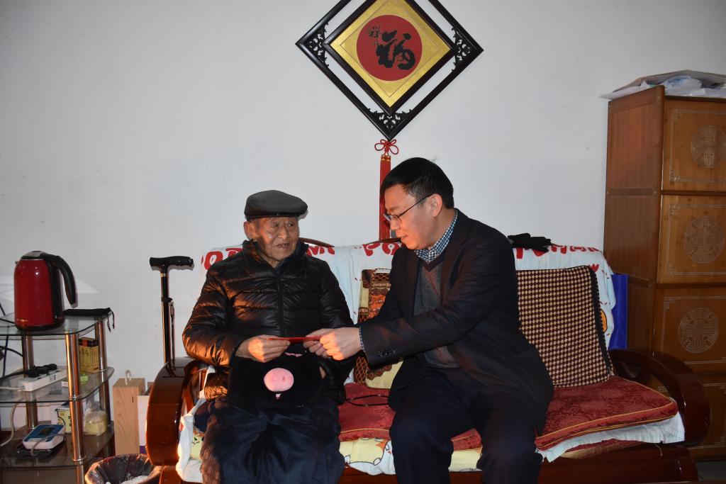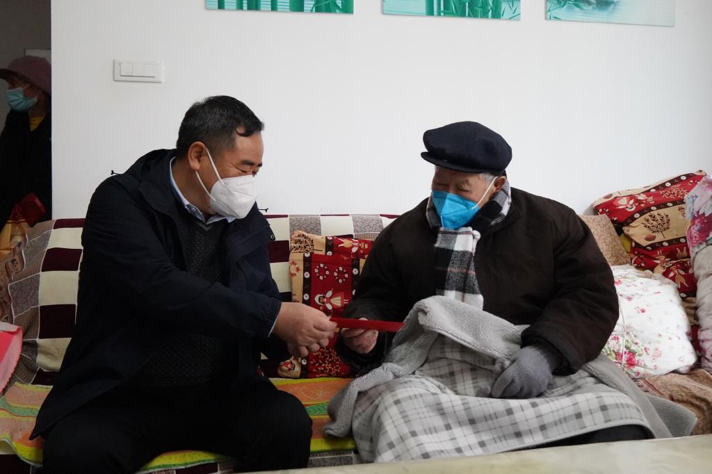 控股公司黨委副書記、副董事長、總經(jīng)理程睿涵走訪慰問老廠分公司離休干部梁占堯(李華為/攝)