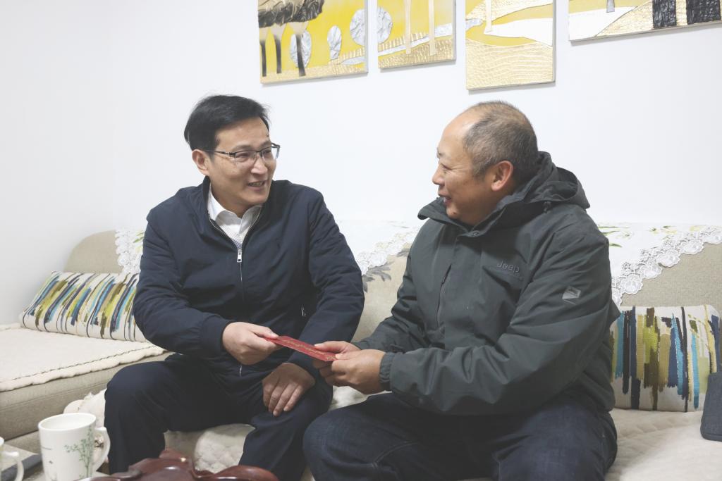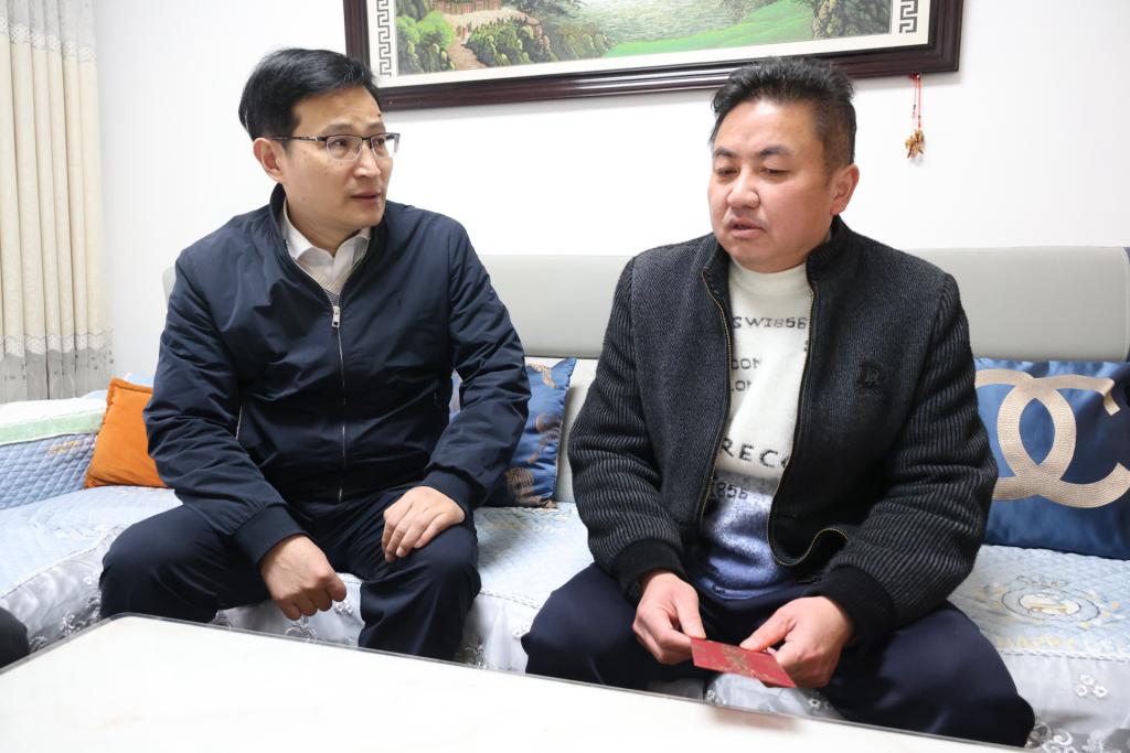 控股公司黨委副書記、工會主席姚家立走訪慰問卡房分公司困難職工陳文學(xué)(張瑞華/攝)