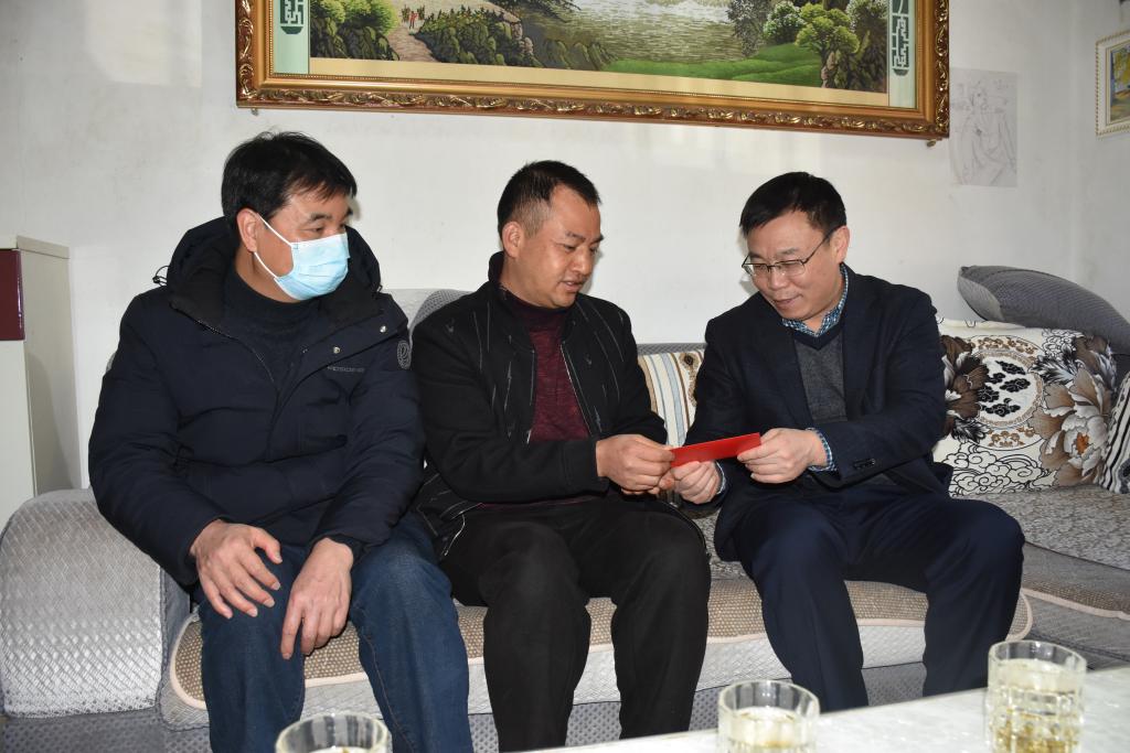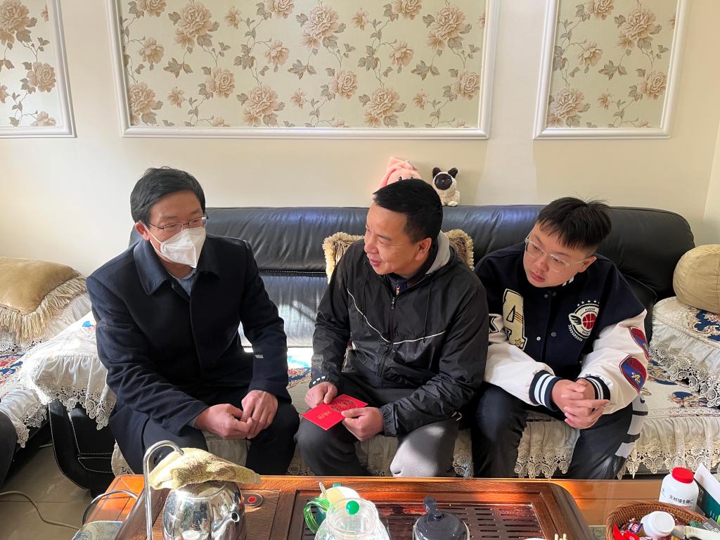 控股公司黨委副書記、副董事長、總經(jīng)理程睿涵走訪慰問老廠分公司困難黨員何佳(李華為/攝)