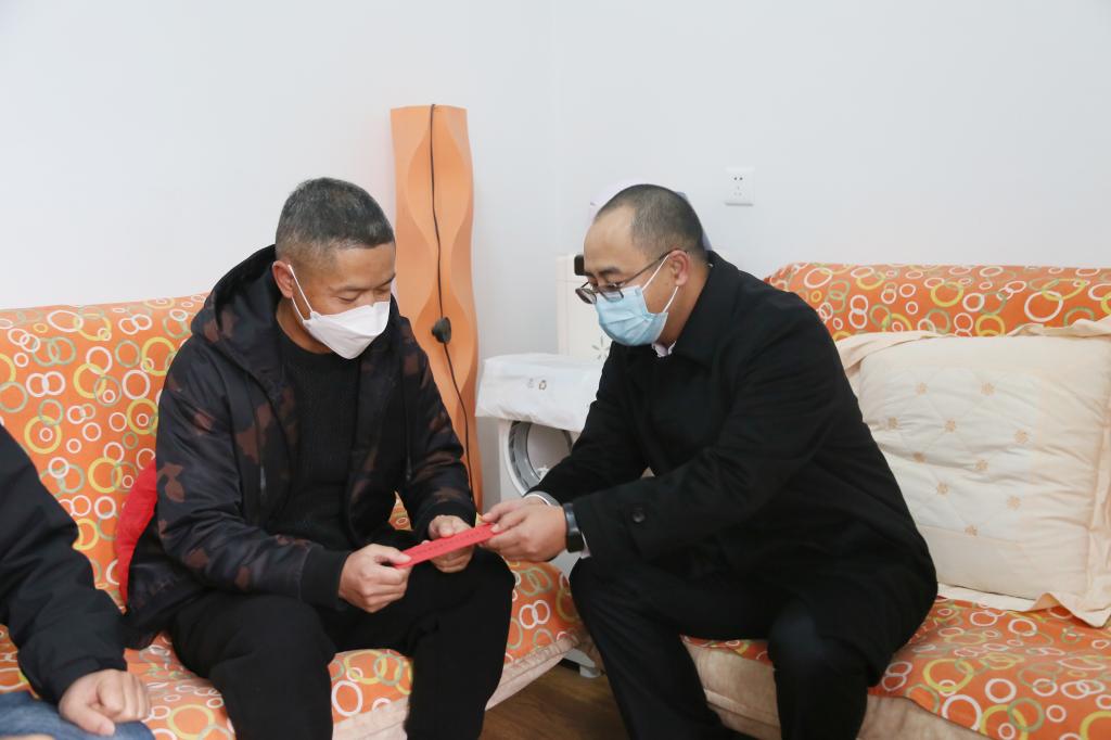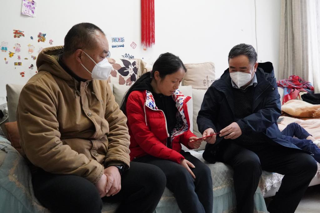控股公司黨委常委、組織人力部部長吳君走訪慰問建設(shè)集團(tuán)(地產(chǎn) 龍馬)公司困難職工任寶華(李楊嬌/攝)
