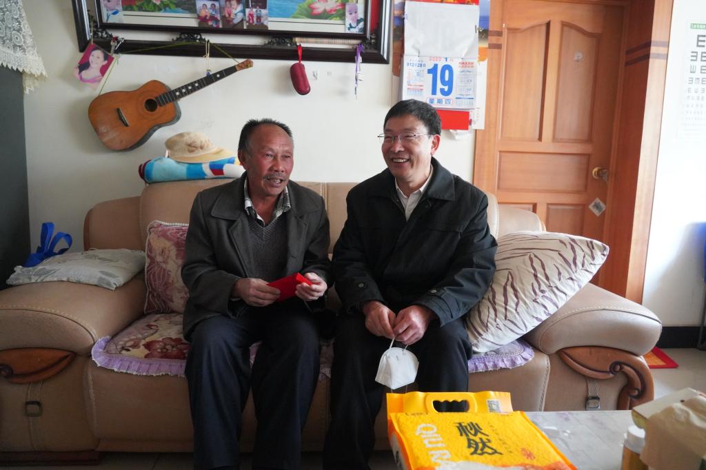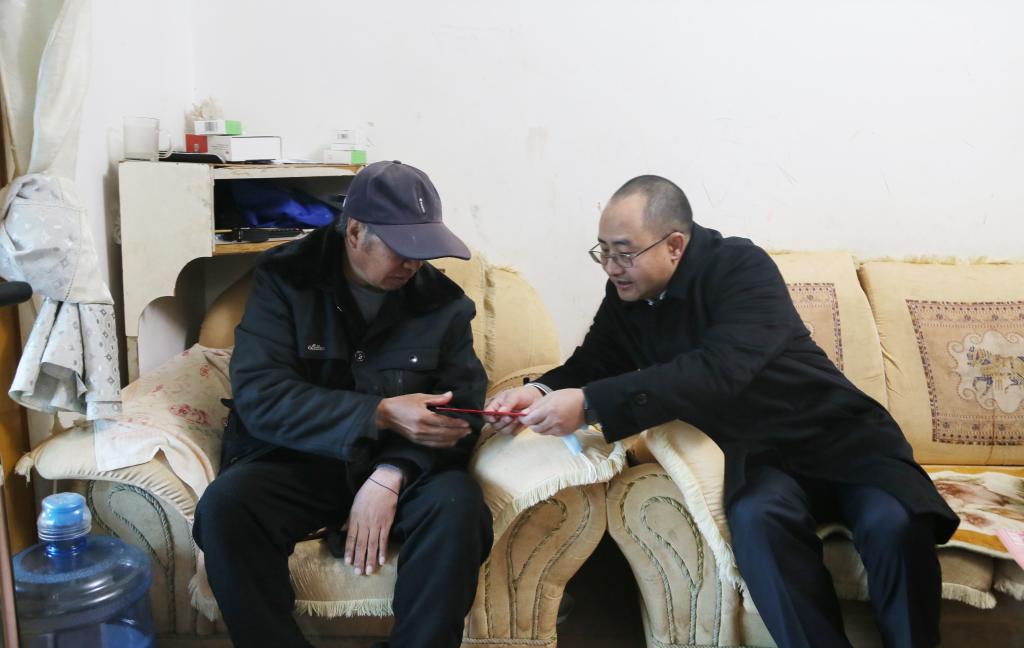 控股公司副總經(jīng)理楊濤走訪慰問大屯錫礦工會建檔困難黨員白老卜(李思佳/攝)
