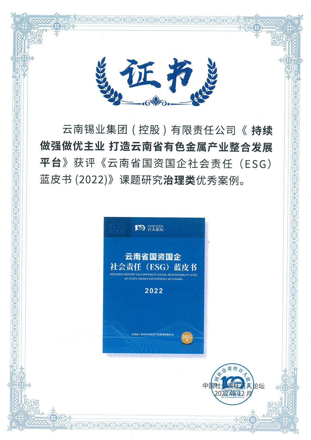 2022年以來,云錫控股公司持續(xù)加強社會責(zé)任管理,由董事會辦公室牽頭開展社會責(zé)任課題研究、社會責(zé)任報告編制等系列工作,受邀參加云南省人民政府新聞辦公室舉辦的云南省屬國有企業(yè)社會責(zé)任(ESG)工新作聞發(fā)布會,全面展現(xiàn)了十年來云錫賡續(xù)“忠黨報國、產(chǎn)業(yè)報國”紅色基因,以服務(wù)國家戰(zhàn)略需求為己任,深入貫徹新發(fā)展理念,主動融入新發(fā)展格局,積極服務(wù)云南省“三個定位”,全面履行國有企業(yè)社會責(zé)任的積極實踐和突出成效。精心組織參加國務(wù)院國資委社會責(zé)任局、云南省國資委舉辦的云南國資國企社會責(zé)任報告發(fā)布會,圓滿發(fā)布云錫控股公司首本《社會責(zé)任報告》,從“責(zé)任專題”“責(zé)任管理”“穩(wěn)健治理”“做優(yōu)品牌”“綠色安環(huán)”“賦能員工”“企業(yè)公民”等維度,全面展示公司黨的建設(shè)、生產(chǎn)經(jīng)營、科技創(chuàng)新、改革發(fā)展、社會責(zé)任工作特色亮點,充分展現(xiàn)云錫履行政治責(zé)任、經(jīng)濟責(zé)任、社會責(zé)任的國企擔(dān)當。在此基礎(chǔ)上,董事會辦公室深入挖掘社會責(zé)任工作亮點成效,梳理典型案例上報參評,《以科技創(chuàng)新賦能全球錫冶煉新標桿》《持續(xù)做強做優(yōu)主業(yè) 打造云南省有色金屬產(chǎn)業(yè)整合發(fā)展平臺》兩個案例成果成功入選《云南省國資國企社會責(zé)任(ESG)藍皮書》,并獲評“優(yōu)秀案例”,展示了云錫以實際行動造福職工群眾、回饋社會期待、引領(lǐng)行業(yè)進步的良好形象。