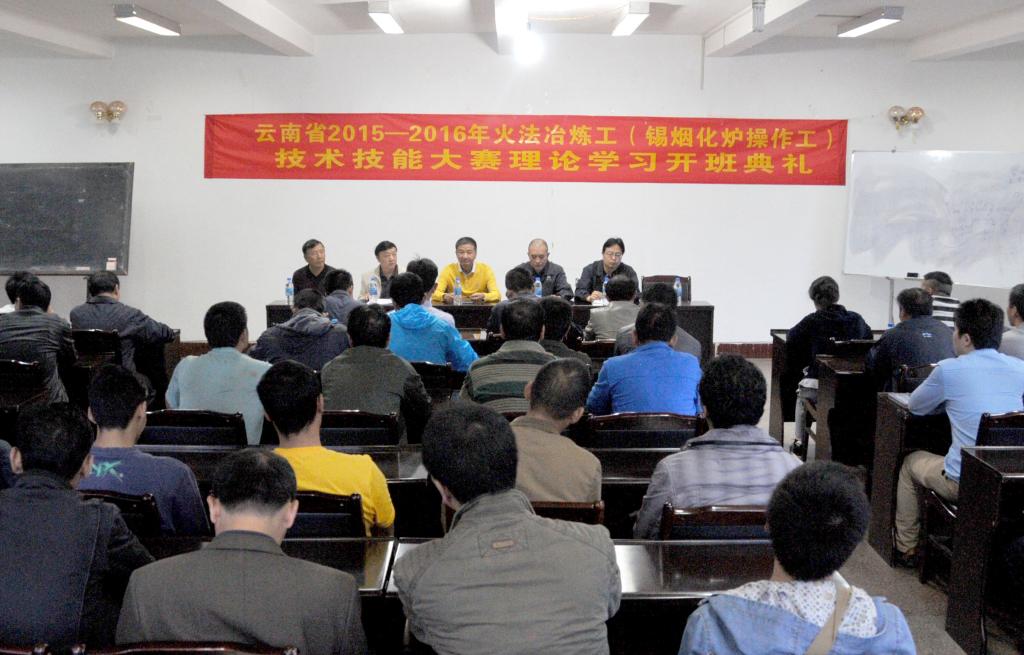 9月14日,云南省火法冶煉工(錫煙化爐操作工)技術(shù)技能大賽理論學(xué)習(xí)開(kāi)班典禮在冶煉分公司舉行,控股公司工會(huì)副主席向鵬飛、控股公司工會(huì)生產(chǎn)保護(hù)部部長(zhǎng)張邁進(jìn)、控股公司人力資源部培訓(xùn)科科長(zhǎng)胡光輝,冶煉分公司黨委副書(shū)記、工會(huì)主席保映輝,副經(jīng)理?xiàng)畛闪郑己私M成員及參賽職工等,共計(jì)60多人參加開(kāi)班典禮。