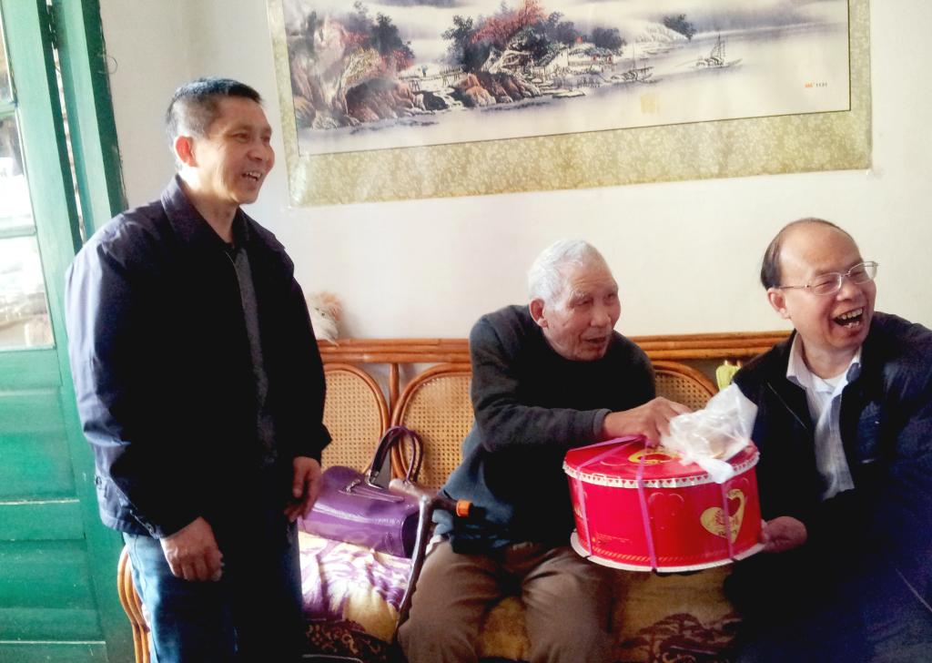 在史建幫家中,李洪平副處長為他送上生日蛋糕,也送上生日祝福,并與他促膝交談,關(guān)切詢問他的家庭生活和身體健康狀況。
