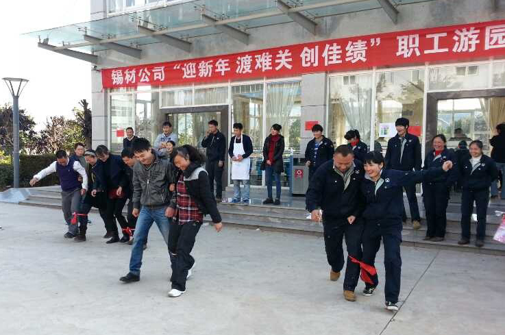 本次游園活動設有拔河比賽、敲棒棒、齊心協力走、毽舞飛揚、跳繩冠軍、雙扣、五子棋、找彩蛋、剪彩帶等項目。第一個活動項目是集體參與的拔河比賽。無論是女子甚多的機關隊,還是重量級兩車間之間的較量,大家伙都使出渾身解數,最終焊化車間以絕對優勢博得拔河第一名;隨后進行的各類游園活動,即使寒風瑟瑟,但大家參與活動的熱情絲毫未減,每一個活動項目前都充滿了歡聲笑語。歡樂的游園活動,反映出錫材人對新的一年充滿希望的樂觀精神。