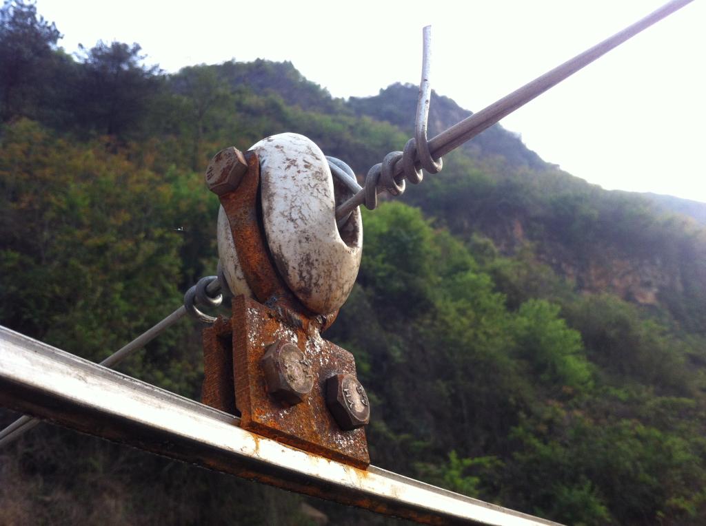 有軌運輸巷道中的橫檔線,以往都是用8#鐵絲連接兩個瓷瓶以阻斷架空線電流外傳,東瓜林坑修理值班長謝永方在不影響架空線的前提下,將原有阻斷架空線電流外傳的瓷瓶由兩個改造為一個,這不僅減少了瓷瓶消耗和架設工作的體力消耗,而且操作容易、架設方便。