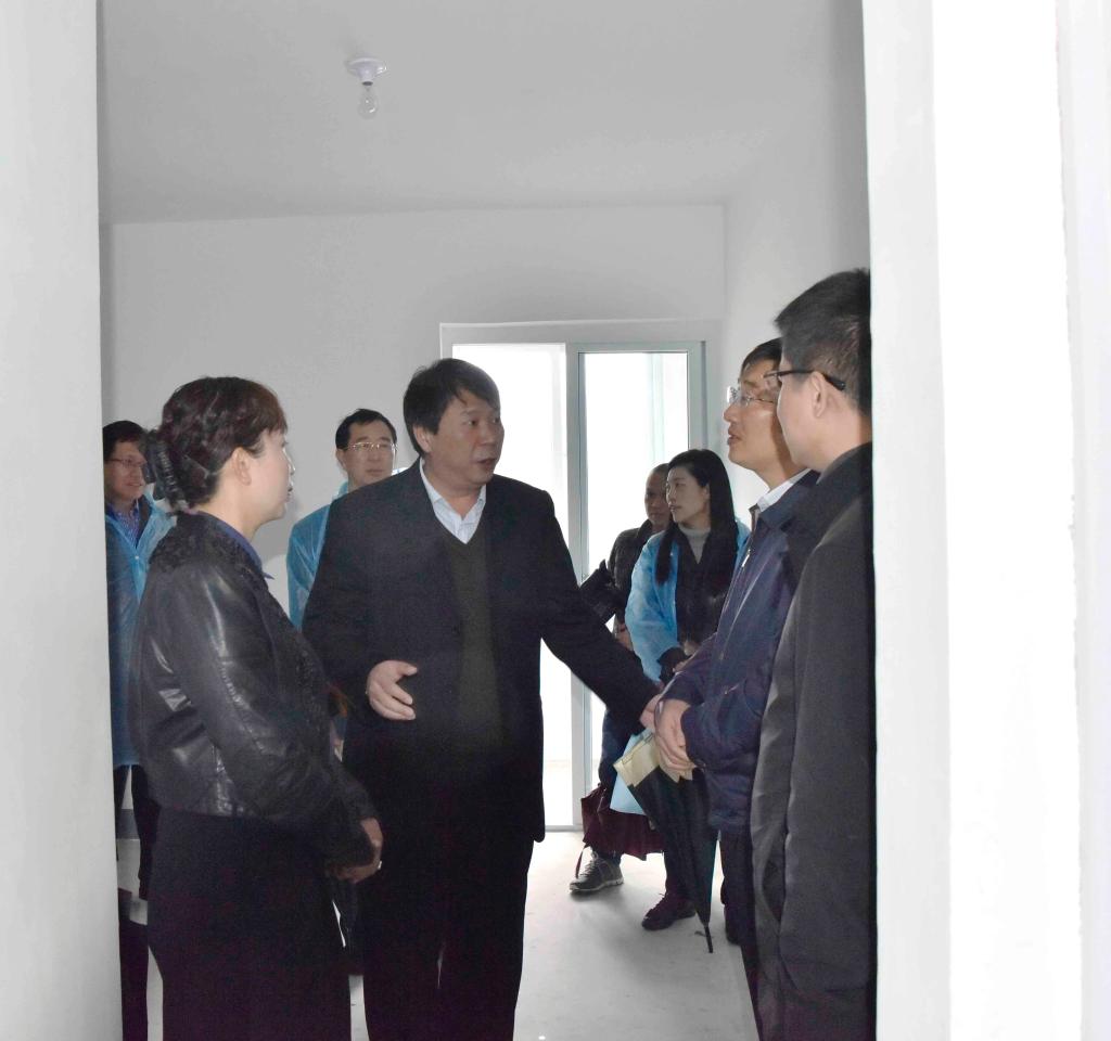 參加儀式的領(lǐng)導(dǎo)參觀了新分的住房。