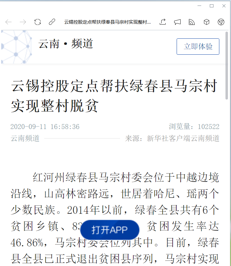 據悉,2016年至2019年,云錫控股連續4年被省委、省政府考核為扶貧工作一類單位,云錫扶貧辦被云南省授予“2019年度扶貧先進集體”稱號。