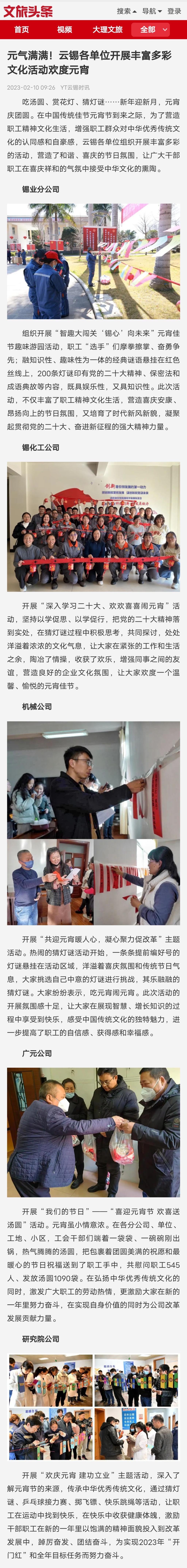 文旅頭條:元氣滿滿!云錫各單位開展豐富多彩文化活動歡度元宵
