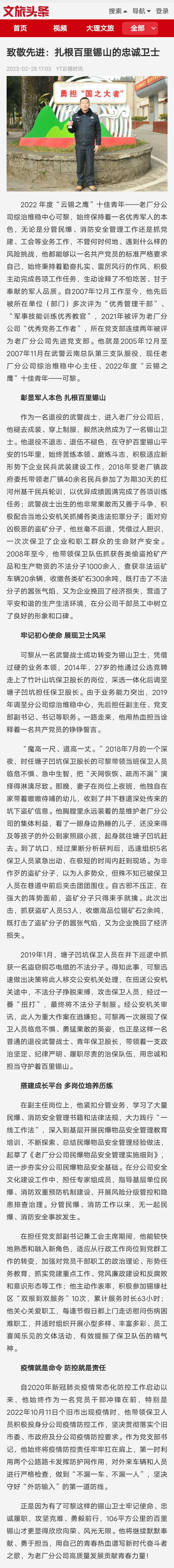 文旅頭條:致敬先進:扎根百里錫山的忠誠衛士