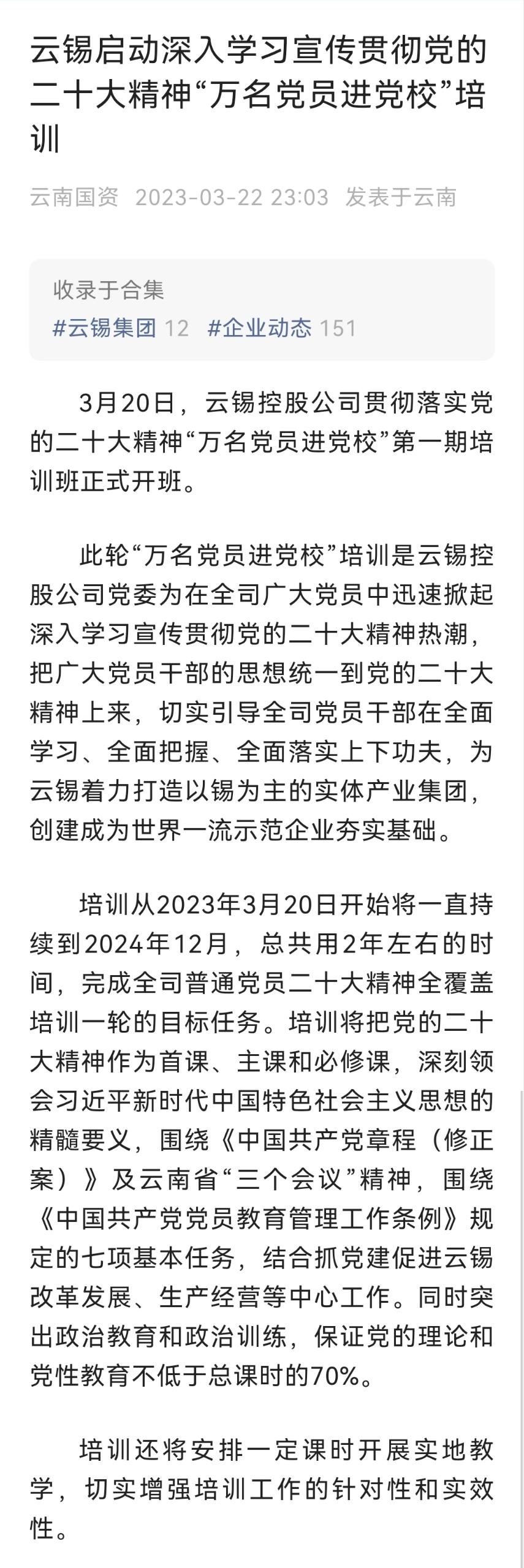 云南國資、文旅頭條:云錫控股公司啟動深入學習宣傳貫徹黨的二十大精神“萬名黨員進黨?!迸嘤?/div>
