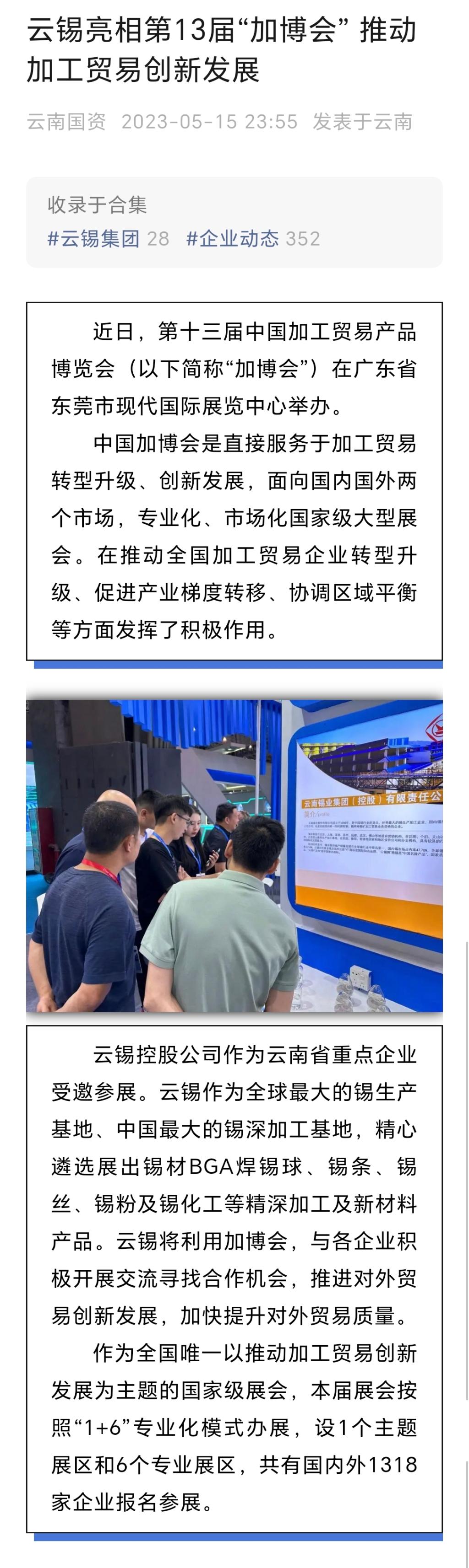 云南國資:云錫亮相第13屆“加博會” 推動加工貿易創新發展