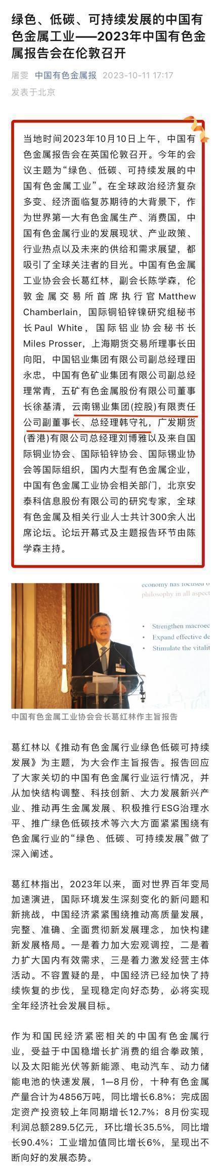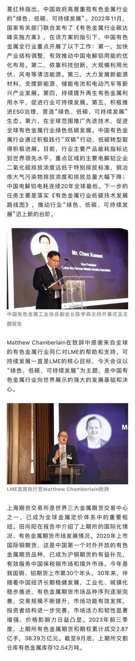 中國有色金屬報:綠色、低碳、可持續(xù)發(fā)展的中國有色金屬工業(yè)——2023年中國有色金屬報告會在倫敦召開
