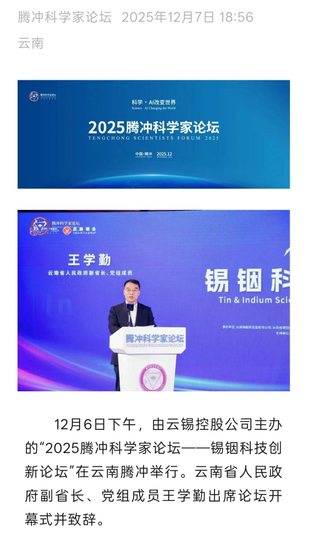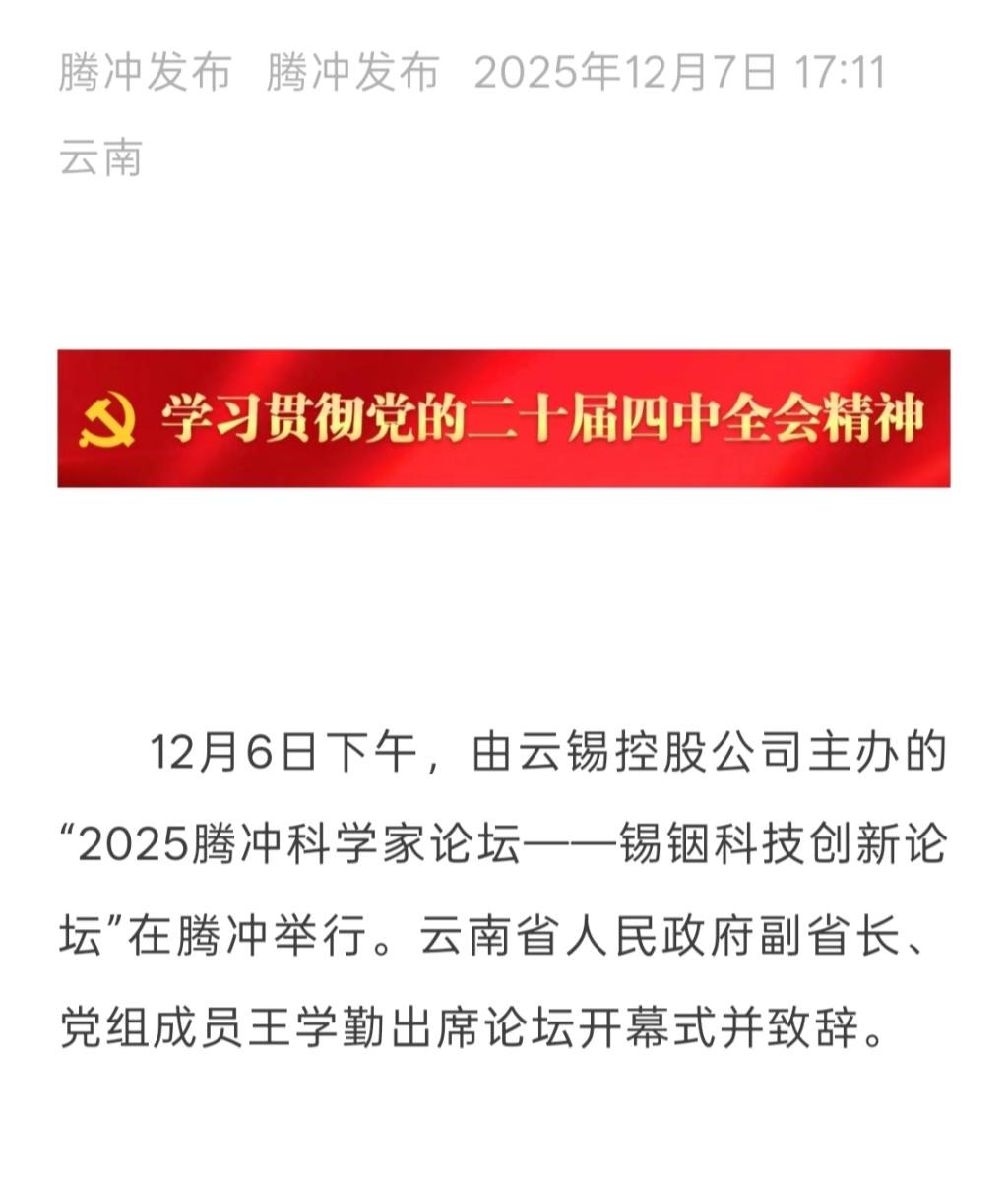 來源:云南日報、云南省科學技術院、騰沖發布、騰沖科學家論壇、IntelMining智能礦業、科技彩云南、有色新聞